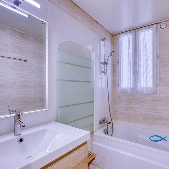 Rue jacques Mawas, dans un immeuble années 30 avec gardien et ascenseur, aux parties communes sécurisées, au 4ème étage, l'appartement de 44m2 se compose comme suit: une entrée ouvrant sur un vaste double salon - salle à manger avec rangements faits sur-mesure, une cuisine aménagée et équipée (four, grille-pain, plaque, cafetière, frigo-congélateur, four à micro-ondes, vaisselle, couverts, ustensiles de cuisine et batterie de casseroles), un Wc séparé, une grande chambre avec coin bureau, une vraie salle de bains avec baignoire et un coin bu...