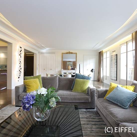 Somptueux appartement (duplex) meublé situé avenue Victor Hugo au coeur du 16ème arrondissement, à deux pas de l’Arc de Triomphe et des Champs-Elysées. A proximité des stations de métro Charles de Gaulle – Étoile (ligne 1, 2, 6 et RER A), Kléber (ligne 6) et Victor Hugo (ligne 6). Entièrement rénové par une architecte de renom. Aménagements et ameublement haut-de-gamme pour cet appartement intégralement climatisé et qui bénéficie d’un système complet de domotique (système son intégré, alarme). Situé au 5ème et 6ème étage (avec ascenseur), ...
