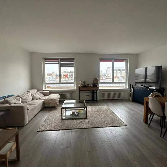 Cet appartement de 75 m² situé au 5ᵉ étage avec ascenseur se compose d’un double séjour, d’une cuisine séparée, de deux chambres et d’une salle de bains. Il offre de beaux volumes et une belle luminosité.
