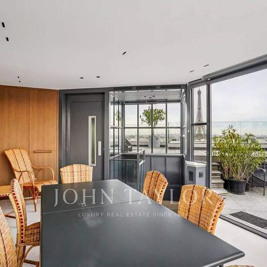 Idéalement situé aux derniers etages d'un immeuble de haut standing en plein coeur du quartier Passy , cet appartement à louer vide ou meublé, entièrement climatisé en triplex de 140 m² avec 130 m² de terrasse, desservi par un ascenseur, se compose de trois niveaux distincts. Au premier niveau: - une grande pièce de vie avec un bar élégant - une cuisine équipée et deux terrasses offrant une vue imprenable Au deuxième niveau: -la chambre principale avec son dressing intégré, une terrasse et une vue exceptionnel sur la Tour Eiffel, - une salle...
