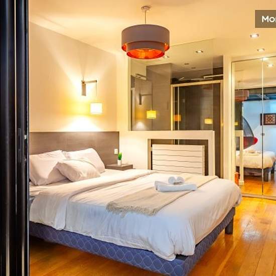 Exceptional 98 m² loft on three floors. Formerly a joinery, it has been transformed into a bright, modern space just a stone's throw from the lively Batignolles district and 15 minutes from Montmartre. With 3 comfortable bedrooms, a private home cinema and a fully-equipped kitchen opening onto the living room, this place combines industrial charm with contemporary comfort. Tastefully decorated with top-of-the-range furnishings (Ghanaian marble tables, custom-made sofas, works of art) to offer the perfect balance between modernity and authent...