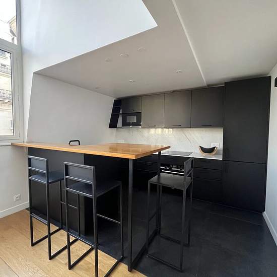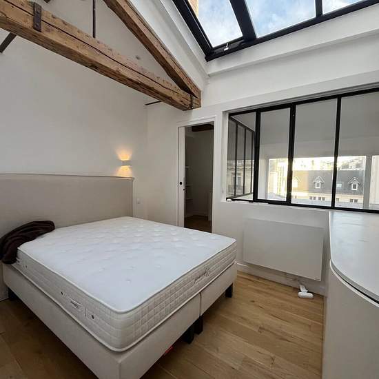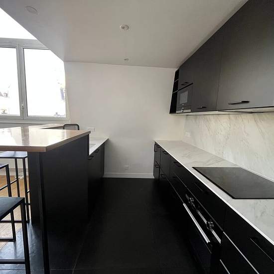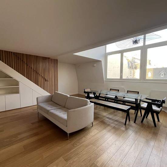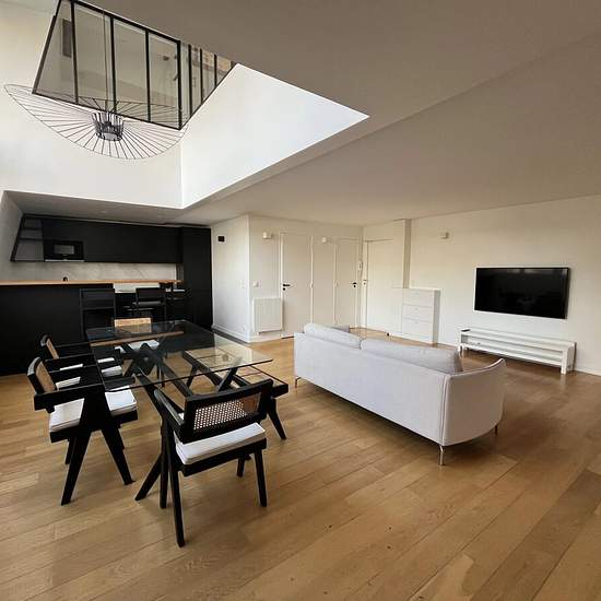 Situé rue Alfred Roll, au cœur du quartier Pereire / Wagram, ce magnifique duplex meublé de 92 m² (98 m² au sol) occupe les 3e et 4e étages, avec ascenseur, d’un immeuble ancien avec gardien. Entièrement rénové récemment, l’appartement séduit par ses volumes exceptionnels et son esprit loft. Disposition : Premier niveau : - Superbe séjour / salle à manger baigné de lumière, offrant 4,80 m de hauteur sous plafond, - Cuisine américaine ouverte, entièrement équipée, avec bar convivial, - Buanderie et dressing - Toilettes invités Second niveau (...