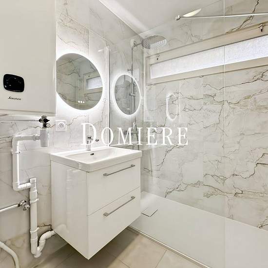 TERNES/MARCEL RENAULT : Dans un immeuble récent de bon standing, très beau 3 pièces refait à neuf avec matériaux de qualité : Parquet neuf, cuisine aménagée, nombreux placards, plaque 4 feux. Le séjour et une chambre, sur rue calme, sont orientés sud-ouest, une chambre sur cour permet de se rendre (par la porte fenêtre) à un espace de verdure où seul cet appartement peut y avoir accès. L'appartement est clair et calme, le dégagement mène à la salle d'eau au revêtement haut de gamme avec douche à l'italienne, meuble sous évier, le tout avec é...