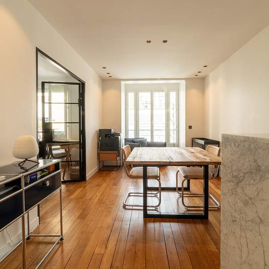 Situé rue de Torricelli, au coeur du quartier prisé des Ternes, à proximité immédiate des commerces, du marché de la rue Lebon, des restaurants, des écoles et des transports, cet appartement bénéficie d'un cadre de vie recherché. Au quatrième étage par escalier d'un immeuble ancien de standing, nous vous proposons un appartement de 52 m² entièrement rénové. Traversant et lumineux, il offre un plan optimisé permettant différentes possibilités d'aménagement tout en conservant de beaux volumes. Il se compose d'une entrée, d'une cuisine ouverte ...