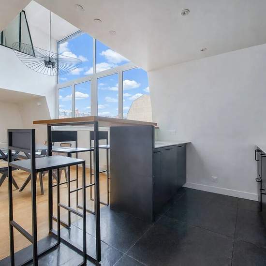 Situé rue Alfred Roll, au cœur du quartier Pereire / Wagram, ce magnifique duplex meublé de 92 m² (98 m² au sol) occupe les 3e et 4e étages, avec ascenseur, d’un immeuble ancien avec gardien. Entièrement rénové récemment, l’appartement séduit par ses volumes exceptionnels et son esprit loft. Disposition : Premier niveau : - Superbe séjour / salle à manger baigné de lumière, offrant 4,80 m de hauteur sous plafond, - Cuisine américaine ouverte, entièrement équipée, avec bar convivial, - Buanderie et dressing - Toilettes invités Second niveau a...