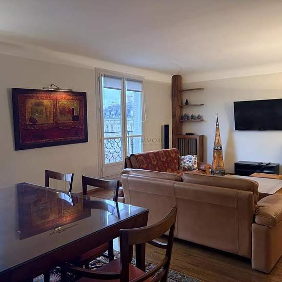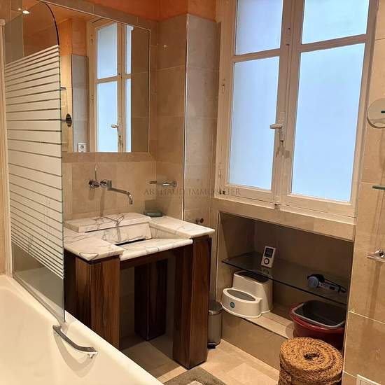 Avenue Mac Mahon – Arc de Triomphe. Au cinquième étage d’un immeuble haussmannien avec concierge, digicode et caméras de sécurité, cet appartement traversant, très lumineux et loué meublé d’une surface de 82,25 m² habitables se compose d’une entrée, d’une grande pièce de réception (séjour / salle à manger), d’une cuisine aménagée et équipée, d’une buanderie, de deux chambres, d’une salle de bains et d’un WC séparé. L’appartement bénéficie d’une bonne exposition, et est équipé d’une porte blindée ainsi que d’un coffre-fort. Disponibilité : im...