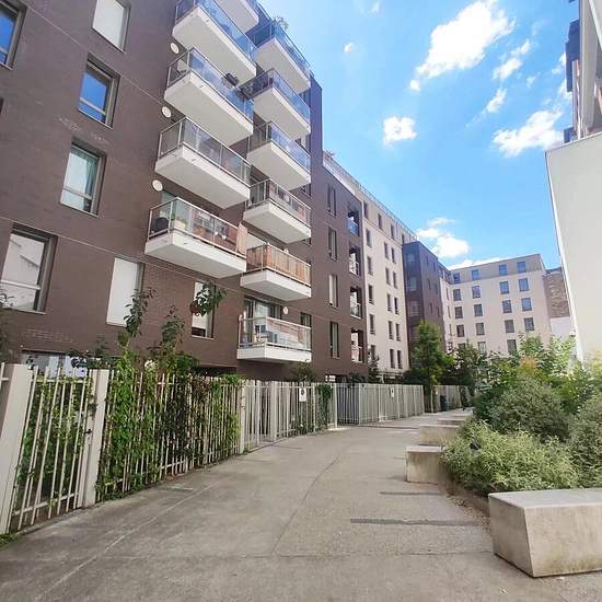 Situé au 13 boulevard Ornano, Paris 18ᵉ, au pied des commerces et des transports, cet appartement de 61,60 m², au 1er étage côté cour intérieure avec ascenseur d’un immeuble récent donnant sur cour intérieure, offre un cadre de vie calme, fonctionnel et bien situé. Descriptif du bien : Une entrée avec placard, pratique pour le rangement. Un séjour lumineux avec accès à un balcon, ouvert sur une cuisine US aménagée et semi-équipée (plaques, hotte). Deux chambres, bien agencées. Une salle de bains avec WC, moderne et confortable. Équipements s...