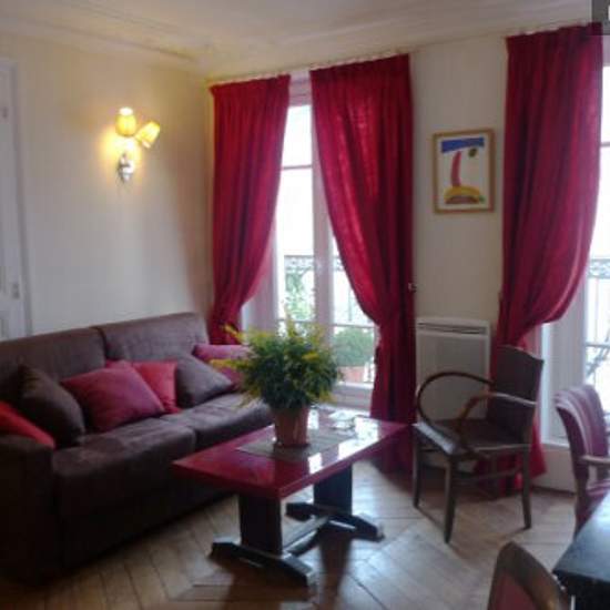Quartier Abbesses : Cet appartement élégant de 70m² est situé au 2ème étage (sans ascenseur) d'un bel immeuble en pierres et briques à 400 mètres du fameux Moulin Rouge. La rue pavée est calme et comporte de nombreuses cours fleuries. En dirigeant ses pas vers le haut de la rue on atteint à 100 mètres la partie la plus centrale de Montmartre, la rue des Abbesses. L'appartement est traversant : il offre 4 grandes fenêtres, un parquet traditionnel en bois et 3 cheminées servent d'écrin à une décoration raffinée. L'appartement a également un ba...