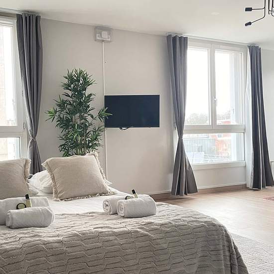EN Stunning Parisian Retreat Steps Away from Père Lachaise Discover the charm and elegance of our beautiful Parisian apartment, located in the heart of the iconic Père Lachaise area. Just moments away from the vibrant Place de la Nation and historical Place de la Bastille, this residence promises an unforgettable stay in the City of Lights. The Space: Relax in Style: Unwind in our spacious living room, equipped with a flat-screen TV, a cozy corner sofa bed that comfortably sleeps two, and an additional bunk bed for two. Sleep in Comfort: Res...