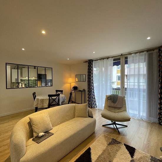 Au sein d'une résidence calme et verdoyante, superbe appartement T3 meublé et entièrement équipé. Il se compose d'une entrée, d'un séjour, d'une cuisine séparée et équipée, d'un cellier, de deux chambres avec placards, d'une salle d'eau, d'un WC séparé, d'un balcon, ainsi que d'un garage en sous-sol. Loyer CC / mois : 900.00 dont provisions mensuelle des charges : 80.00 Dépôt de garantie : 1 200.00 Honoraires charge locataire : 649.44 TTC (dont EDL : 228.00 - surface habitable 76.00 m²).