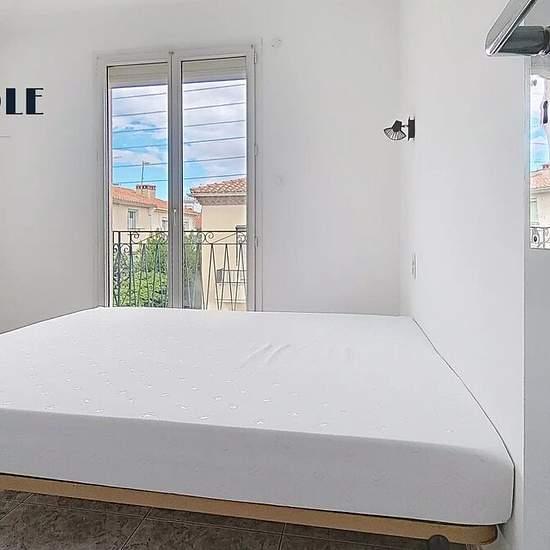 La Lunette area, in a residential neighborhood, close to all services and amenities, on the top floor of a small condominium. Furnished apartment comprising an entrance hall, a bright living room with access to two balconies, an open fully equipped kitchen (storage units, oven, hob, extractor hood, dishwasher, microwave, refrigerator), a bathroom with shower and washing machine, separate WC, two good-sized bedrooms with storage, and a large garage with private parking. Beautiful finishes, very comprehensive equipment. Air conditioning. Water...