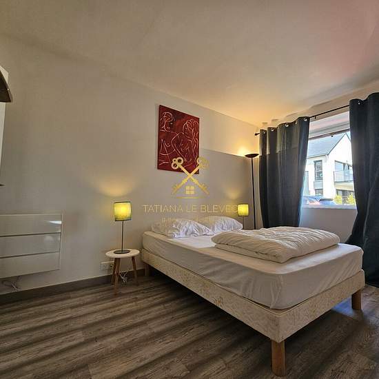 PLOEMEUR - Appartement T3/4 avec vue mer et jardin, entièrement rénové Cet appartement de 80 m², entièrement meublé et rénové en 2021, offre deux chambres et une salle d'eau. Le séjour de 40 m², lumineux, s'ouvre sur une cuisine américaine aménagée. Vous profiterez d'une vue mer et d'un jardin de 200 m². Proche de 2 bus, 1 crèche, 3 maternelles, 3 écoles élémentaires et 5 restaurants. À 5 min en voiture : 2 commerces, 3 parcs et 1 collège. 21 médecins à 10 min. Éligible fibre optique. Bail mobilité/code civil uniquement, disponible immédiate...