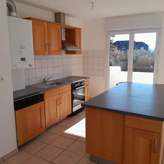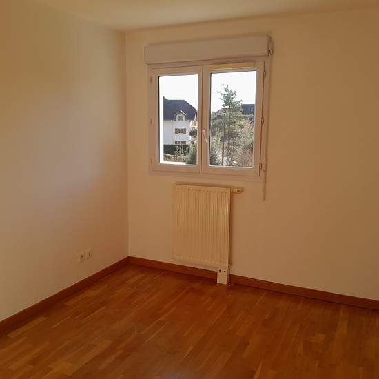 DEPOT DE DOSSIER OBLIGATOIRE SUR NOTRE SITE AVANT VISITE POISY, agréable appartement de type T3 au 1er étage comprenant: une entrée avec placard, un séjour avec cuisine équipée ouverte donnant sur grand balcon, deux chambres avec placard, salle de bains et wc séparés. Un garage et une place de parking . Chauffage et eau chaude individuel au gaz. Disponible le 15/11/2025