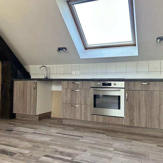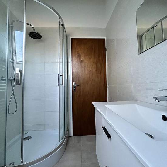Spacieux et lumineux appartement entièrement rénové, d'une superficie de 53 m², situé au 2ème et dernier étage d'un petit immeuble, comprenant : Grand salon-séjour avec poêle à bois, cuisine aménagée ouverte, 2 chambres et une salle d'eau avec WC. Terrain commun et garage privatif.