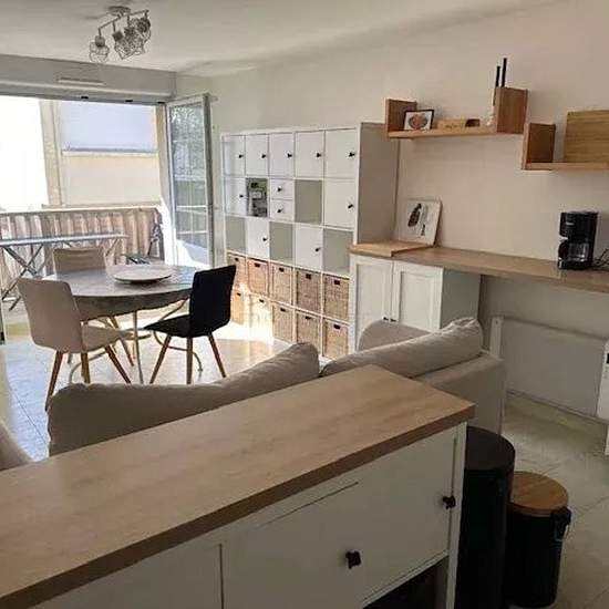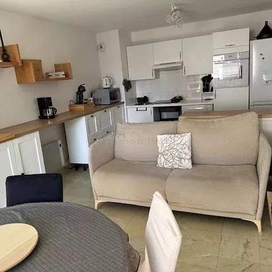 Appartement dans résidence récente avec ascenseur, comprenant : une entrée, un séjour ( avec canape lit) avec cuisine ouverte donnant accès à une terrasse plein sud, 1 chambre avec un lit 2 personnes, 1 chambre avec un lit gigogne, une salle de douche, un toilette et un emplacement de parking en sous-sol.