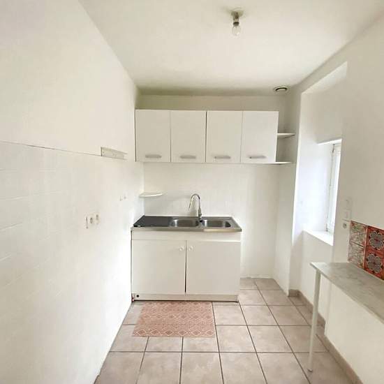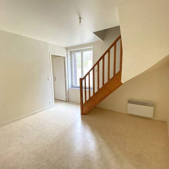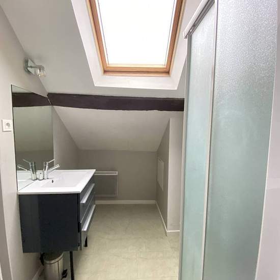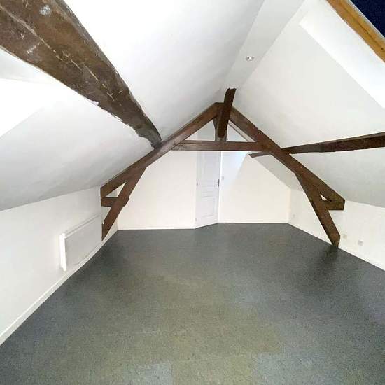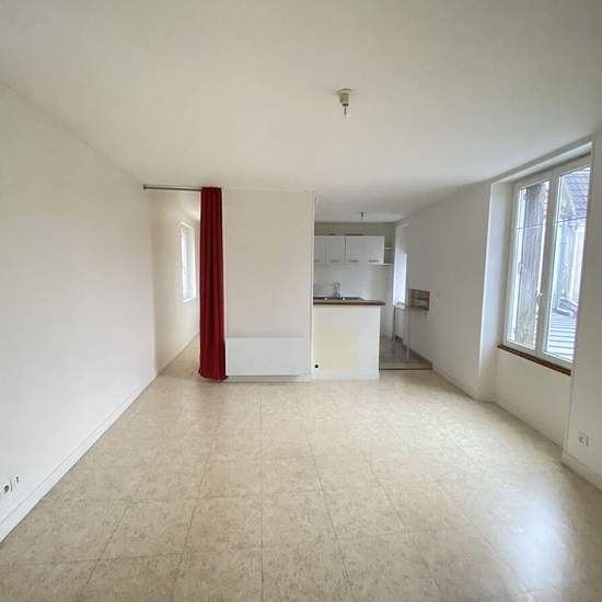 A Rebais, en centre ville, appartement F3 en DUPLEX, comprenant une entrée, une chambre, un wc, une salle d'eau, un séjour avec coin cuisine. A l'étage, une chambre, une salle d'eau. Chauffage par convecteurs électriques.