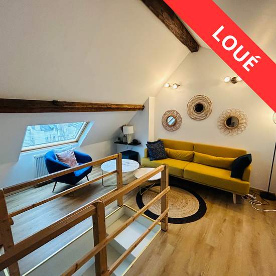 Nous vous proposons cet appartement de type 3 situé au dernier étage d'un bel immeuble ancien en hypercentre de Reims, entre la Place d'Erlon et la rue de Vesle. Se compose d'une pièce de vie avec coin salon, cuisine séparée, aménagée et équipée, deux chambres ainsi q'une salle de douche avec WC. Entièrement meublé et équipé avec tout le nécessaire (machine à laver, lave-vaisselle, four, micro-ondes, cafetière, bouilloire, grille-pain, TV, wifi. Vous n'avez rien à prévoir tout est sur place. Idéal pour une colocation étudiante ! Disponible à...
