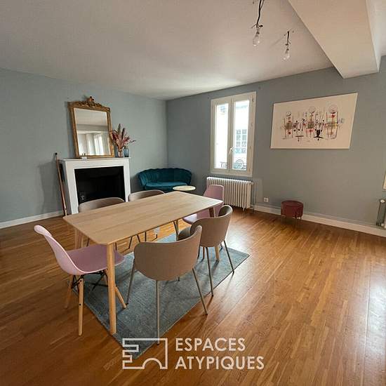 Ce beau duplex est au pied du parc du Thabor, prestigieux parc du centre ville de Rennes ! Petite copropriété calme qui vous confèrera, outre la tranquillité, un vrai confort. Situé au dernier étage, l'appartement s'ouvre sur une entrée, un séjour, une cuisine, deux chambres et une salle de bain, tandis qu'à l'étage (duplex), vous pourrez télétravailler grâce aux deux bureaux prévus à cet effet. Un jardin privatif au rdc de la copro vous donnera la possibilité de profiter des rayons de soleil et pourquoi pas d'y faire pousser quelques plante...