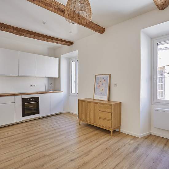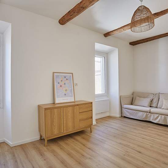 Ravissant appartement meublé (possibilité de retirer certain meubles) comprenant deux chambres, entièrement rénové situé au coeur du village de Rians, à 35 minutes d'Aix-en-Provence, 15 minutes d'Iter Cadarache, 20 minutes de Saint Maximin. Vous serez séduits par le charme de cet appartement situé au premier étage d'une petite copropriété de 3 lots comprenant 1 lot par étage. Cet appartement lumineux dispose d'une pièce à vivre avec poutres apparentes et parquet au sol composé d'un canapé 3 places, d'une table avec deux bancs, et un buffet. ...