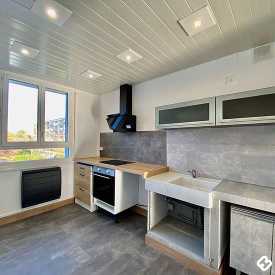 L'agence HB Immobilier vous propose cet agréable appartement T3 de 63,32 m², situé au 1er étage d'une résidence sécurisée et récemment isolée par l'extérieur, à proximité immédiate de l'hôpital, des commerces, des écoles et des transports. Ce logement entièrement rénové offre un séjour lumineux orienté sud-ouest ouvrant sur un grand balcon, une cuisine aménagée et équipée (plaque, hotte, four, rangements hauts et bas), une entrée avec placards, deux chambres dont une avec rangement et balcon, des toilettes séparés, et une belle salle d'eau m...