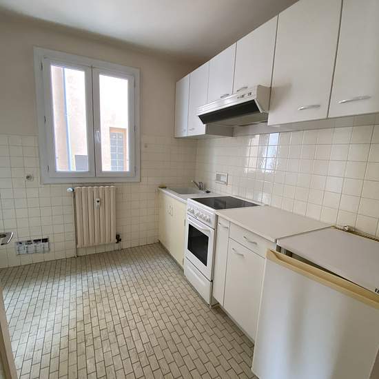 Passage du Prieuré/Place de la Madeleine - Type III au 2ème étage sans ascenseur, composé d'une entrée, séjour avec balconnets, cuisine séparée avec gazinière électrique, hotte, frigo top, deux chambres dont une avec rangements, salle d'eau avec branchement machine à laver, wc. Vous disposez également d'une cave au -1. Mode de chauffage : chauffage collectif fioul avec répartiteurs de chauffe retrouvez nos bien sur cabinetrouergat.com