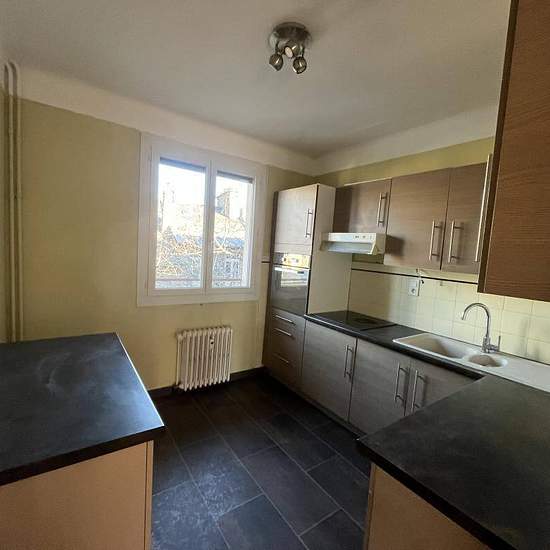 Appartement T3 au 4ème étage comprenant une entrée avec placard, une cuisine indépendante avec éléments haut/bas, une hotte, un four, une plaque induction et un îlot de rangement. Un séjour donnant accès à un balcon, deux chambres dont une avec un placard de rangement et une salle de bain avec meuble vasque, branchement pour machine à laver, une baignoire d'angle et rangements, un wc indépendant. Garage double avec cave au rez de chaussée, jardin collectif dans l'immeuble. Chauffage collectif gaz. Prix moyens des énergies indexés sur les ann...