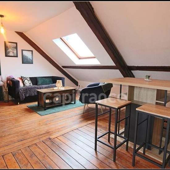 Appartement meublé à louer – Rue de Lessard, Rouen Situé au 4ᵉ étage d'un immeuble sans ascenseur, ce charmant appartement lumineux sous combles vous séduira par son agencement fonctionnel et son atmosphère chaleureuse. Il se compose : * d'une grande pièce de vie accueillante comprenant un coin salon, une salle à manger et un espace bureau, idéal pour le télétravail. * d'une cuisine semi-ouverte et entièrement équipée : réfrigérateur, four, plaques électriques, micro-ondes et cafetière. * d'une chambre principale * d'une petite chambre pouva...