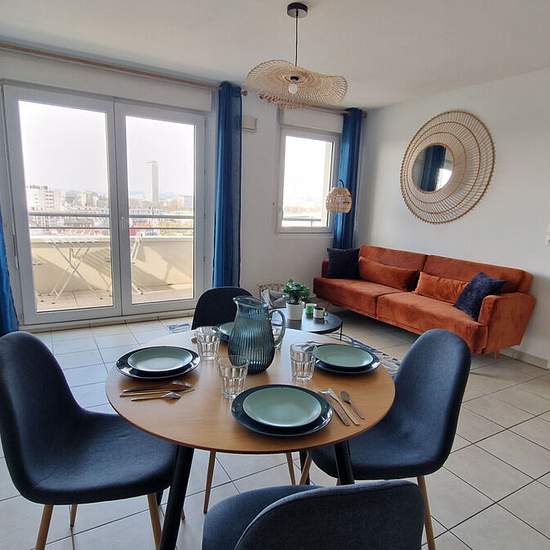 Dans une résidence récente et sécurisée cet appartement meublé situé au 7ème étage avec ascenseur comprend une entrée avec placards, un séjour salon lumineux avec cuisine ouverte entièrement aménagée et équipée, deux chambres avec rangements et bureaux, un wc avec lave-mains, une salle de bain et une agréable terrasse orienté sud avec vue seine. Chauffage compris dans les charges. Profitez de deux emplacements de parking en sous-sol et d'une cave. Loyer : 995€, charges : 200€, caution : 995€, honoraires : 673.20€. Disponible dés le 5 décembre.
