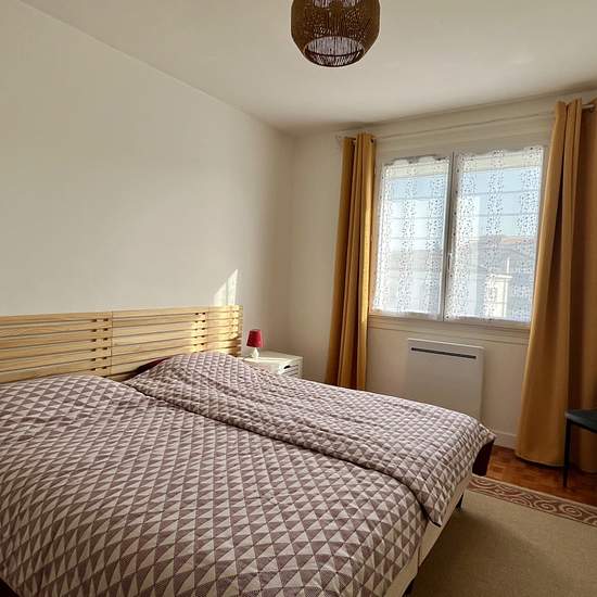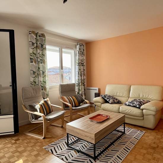 A LOUER à proximité immédiate du marché central de Royan, au deuxième et dernier étage d'une résidence sans ascenseur, un appartement meublé de 66,67 m2 habitables comprenant : Une entrée, un salon/séjour ouvrant sur balcon exposé sud-est, une cuisine équipée, un cellier, un dégagement, deux chambres, une salle d'eau, des wc indépendants. En annexe: un garage et une cave situés au sous-sol du bâtiment. Disponibilité immédiate. Les informations sur les risques auxquels ce bien est exposé sont disponibles sur le site Géorisques : Afficher le t...