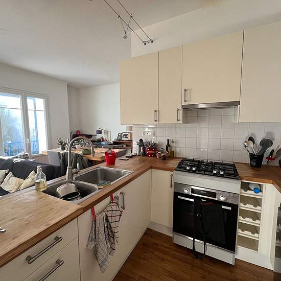 ROYAN centre, entre Notre Dame et Foncillon, 150m plage, APPARTEMENT F3 en 1er étage comprenant entrée et dégagement avec placard, séjour ouvrant sur balcon (aperçu mer du balcon), cuisine aménagée ouverte sur séjour, 2 chambres avec placard, salle d'eau, wc. Chauffage central au gaz de ville. Cave en sous sol.