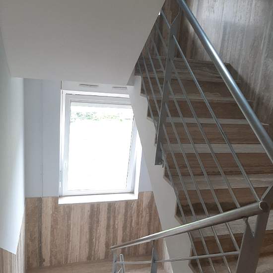 T3 70m² Sarreguemines. The Laforet agency presents for rent this T3 apartment of 56 m² located in a well-maintained building, comprising: a kitchen with a sink area open to a lovely living/dining space with balcony access, 2 bedrooms, a bathroom with a shower and a separate toilet. A cellar and a private parking space. Charges €55: maintenance of exterior and common areas, boiler maintenance, electricity and water for the common areas.