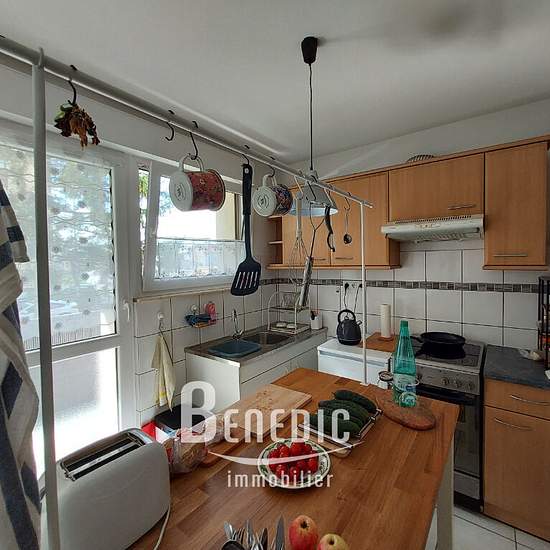 The BENEDIC PIED A TERRE IMMOBILIER agency invites you to discover this charming T3 (three-room, two-bedroom) apartment on the 1st floor with elevator in SARREGUEMINES. It is arranged as follows: an entrance hall, a living room, an equipped kitchen, 2 bedrooms, a bathroom and separate WC. In addition you will also have a cellar. Service charges amount to €75 and include: maintenance of the common areas, green spaces, the elevator, the boiler, electricity for the common areas, cold water and household waste collection (TOM). The apartment is ...