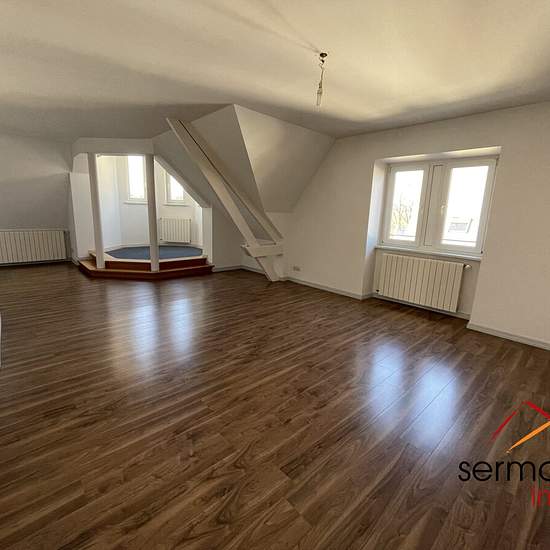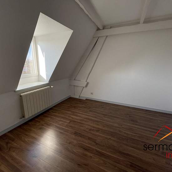 Appartement atypique de type F3 : Dans une belle monopropriété à deux pas de la frontière, cet appartement au troisième et dernier étage se compose d'une entrée avec placards, d'un vaste séjour, d'une cuisine aménagée et équipée, de deux chambres, d'une salle de bain avec douche et baignoire et d'un w.c indépendant. Une cave en sous-sol vient compléter ce bien. Possibilité de louer une place dans la parking privé de l'immeuble pour un supplément de 30€ par mois. Disponible à partir du 14 février Loyer : 570 + 50€ de charges comprenant la tax...