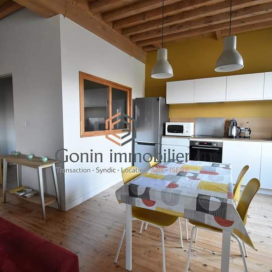A LOUER: Superbe appartement entièrement rénové, à louer meublé, dans le centre village de Sault-Brénaz, composé d’un séjour avec cuisine ouverte entièrement équipée (lave-vaisselle, four, micro-ondes, plaques à induction, réfrigérateur), de 2 chambres, d’un bureau, d'une salle de bains ainsi que d'1 WC séparé. Le logement dispose également d'un grand placard. Les + : isolation ++, décoration +++. Disponible immédiatement. Chauffage individuel électrique et production d’eau chaude par cumuls.