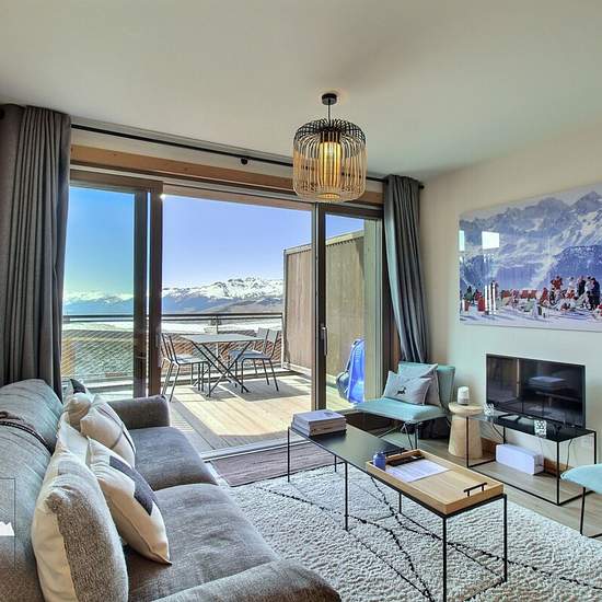 A propos de ce bien L'appartement Le Ridge 111, de typologie 2 chambres Duplex, est situé au 1er étage de la Résidence Premium Le Ridge et peut accueillir jusqu'à 06 personnes. La décoration, à la fois cosy et contemporaine met en valeur des finitions soignées et des matériaux de qualité (exclusivement Made In Europe) pour une atmosphère chaleureuse et élégante. D'une superficie de 60m2, l'appartement se compose : Au Niveau principal - D'une cuisine entièrement équipée ouverte sur un vaste séjour lumineux avec une vue panoramique ; - D'une ...