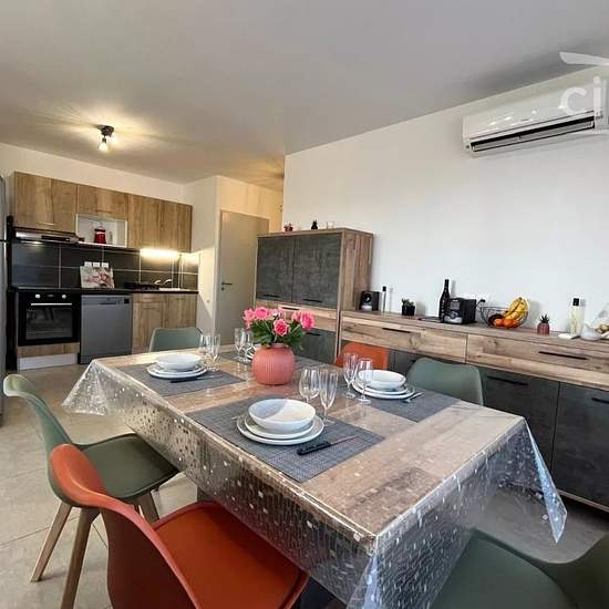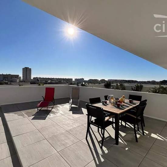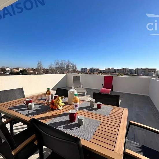 LOCATION SAISONNIERE Venez séjourner dans ce bel appartement situé au 3ème étage d'une résidence neuve sur les jardins de Serignan a seulement 200m de la plage de Valras-Plage. Ce T3 conçu pour 6 personnes comprend une cuisine ouverte équipée :cafetière (Senseo),micro-ondes,four,plaque, réfrigérateur/congélateur ,séjour avec un canapé-lit (140), un coin nuit où l'on retrouve deux chambres, une avec lit 160 et la seconde avec deux lits simples (90) une salle d'eau avec douche à l'italienne et un toilette séparé. Afin de profiter du soleil du ...