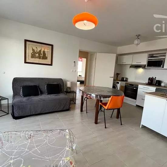 Location saisonnière : Venez séjourner dans ce charmant T3 situé à Sérignan en résidence sécurisée avec ascenseur et parking privé. Idéal pour 4 personnes, le bien est composé comme suit: un séjour/cuisine entièrement équipée, 2 chambres avec lits doubles (un 160 et un 180), une salle d'eau, un WC séparé et une belle terrasse de 24m² avec plancha électrique. Le ménage et le linge de maison sont inclus (possibilité de louer les kits de serviettes à l'agence). Le logement dispose du wifi et les animaux sont acceptés. Equipements: - clim - four...