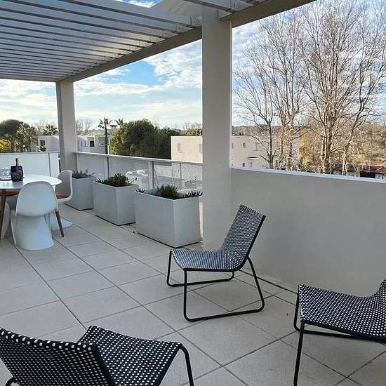 Location saisonnière : Venez séjourner dans ce charmant T3 situé à Sérignan en résidence sécurisée avec ascenseur et parking privé. Idéal pour 4 personnes, le bien est composé comme suit: un séjour/cuisine entièrement équipée, 2 chambres avec lits doubles (un 160 et un 180), une salle d'eau, un WC séparé et une belle terrasse de 24m² avec plancha électrique. Le ménage et le linge de maison sont inclus (possibilité de louer les kits de serviettes à l'agence). Le logement dispose du wifi et les animaux sont acceptés. Equipements: - clim - four...