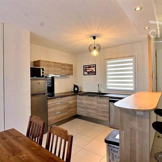 LOCATION SAISONNIERE. Dans une résidence sécurisée avec parking privée, bel appartement avec terrasse composé comme suit: Un séjour/cuisine équipée avec canapé convertible, un WC séparé, et à l'étage: une chambre avec lit 160 et une deuxième avec deux lits 90et une salle d'eau avec WC. Ideal pour une famille ce bien est climatisé, est équipé d'une box internet et les animaux y sont acceptés. Les +++:Télévision grand écran, frigo grande capacité, plaques induction, four micro ondes, cafetière, grille pain, lave-vaisselle et lave linge + une p...