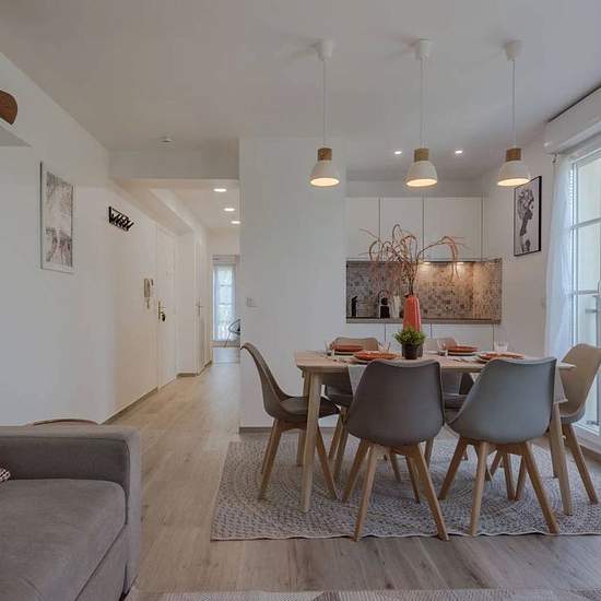 Situé dans un quartier prisé de Serris, rue de Scandinaves, cet appartement de standing offre un cadre de vie exceptionnel. Avec ses 3 pièces, ce logement est entièrement meublé avec goût et équipé pour un confort optimal. Caractéristiques : Surface : 63m2 Disposition : séjour lumineux, cuisine ouverte équipée, deux chambres avec rangements, salle de bain moderne Équipements : électroménager complet, mobilier de qualité, connexion internet incluse Proximité : commerces, transports en commun, écoles, parcs et centres commerciaux Avantages : Q...