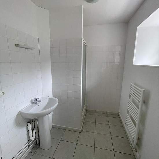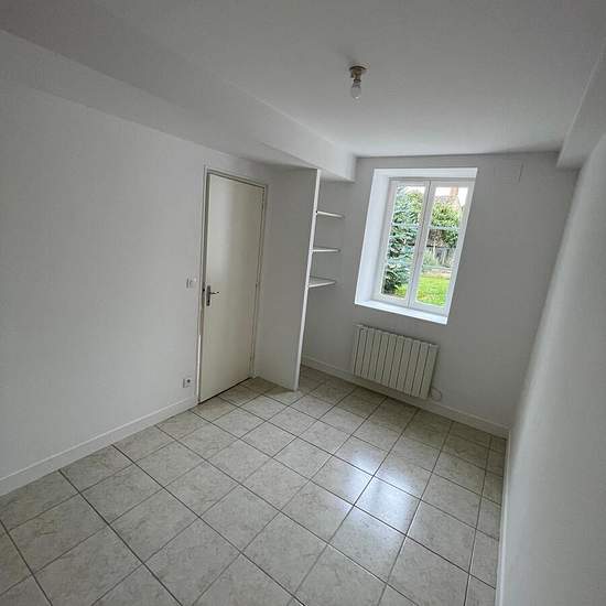 Logement type maison de ville de plain pied avec un grand jardin privatif, comprenant : Entrée avec placard de rangements, séjour traversant, partie cuisine aménagée, 2 chambres, salle d'eau, wc. Chauffage électrique individuel. Possibilité de louer en plus une remise d'environ 15 m² 25 ? /mois. Libre