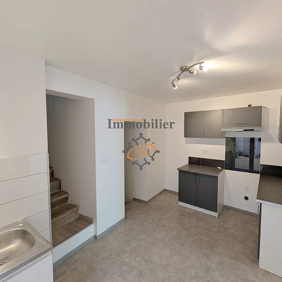 Saint Affrique, centre-ville, en 1er étage, à louer, appartement Type 2 bis avec deux balcons et terrasse partagée. 65m2 habitables en duplex, salon séjour 18m2 donnant sur balcon, cuisine intégrée donnant sur terrasse, chambre 10,5m2 avec balcon, bureau 11m2, salle d'eau, et cellier. Lumineux, confortable. Disponible le 24 Décembre 2025. Les informations sur les risques auxquels ce bien est exposé sont disponibles sur le site Géorisques : hubert-peyrottes-immobilier.fr