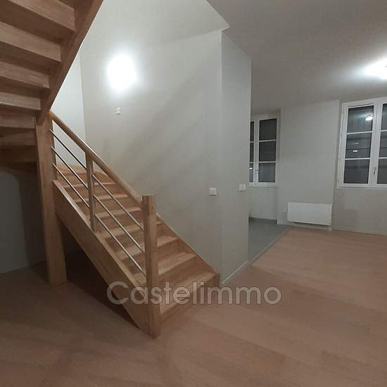 Saint-Aignan, appartement de type F3 sur 3 niveaux comprenant au rez-de-chaussée : entrée. Au second niveau, cuisine aménagée et équipée, salon/séjour, buanderie, cellier et WC. Au troisième et dernier étage : 2 chambres, salle d'eau avec WC et placard. Terrasse privative, 2 places de parking et jardin commun. Disponible mi-février.