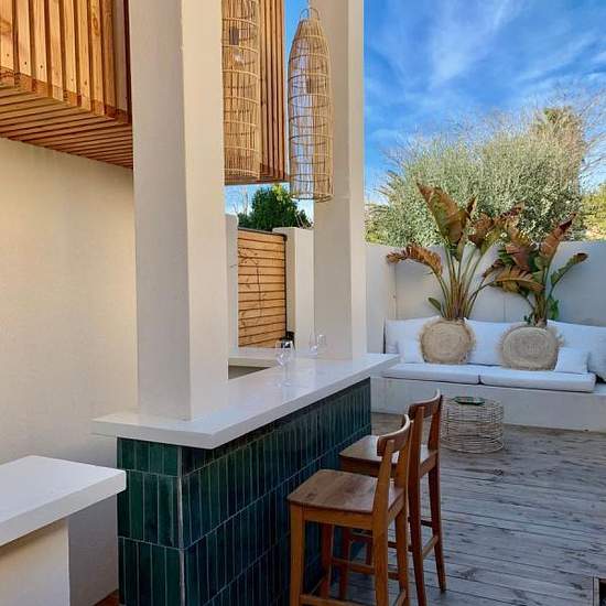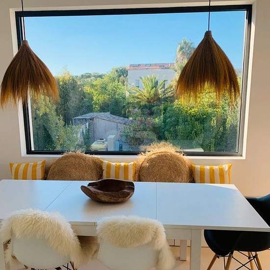 Appartement de 80 m² à louer sur Saint-Cyr-sur-Mer Dans maison rénovée à Saint cyr les lecques à 100 m des plages (proche de l'allée des Pins), un appartement à l'étage à 2 mn à pieds de la plage des Lecques, composé d'un grand balcon plein sud avec table à manger, un grand patio au rez de chaussée avec sa douche extérieure et sa cuisine d'été / bar, 1 salle de douche, 1 wc, 1 salle de bain dans une chambre, 3 chambres et un coinTV avec lit. Grande pièce à vivre très lumineuse avec grande hauteur. Climatisation réversible. Cuisine tout équip...