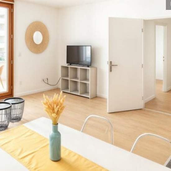 Grand 3 Pièces Neuf, Proche PARIS, Transports T3 neuf avec 2 terrasses + rooftop – À 5 min de Paris Dans une résidence neuve (2024) de standing, découvrez ce superbe appartement T3 de 69 m², lumineux, moderne et au calme. Situé en étage élevé avec ascenseur, il bénéficie non seulement d'une terrasse privative, mais aussi d'un rooftop commun aménagé avec barbecue pour profiter d'un cadre exceptionnel. Espaces de vie Séjour spacieux avec canapé-lit de qualité et table extensible Cuisine moderne entièrement équipée : four, micro-ondes, plaques,...