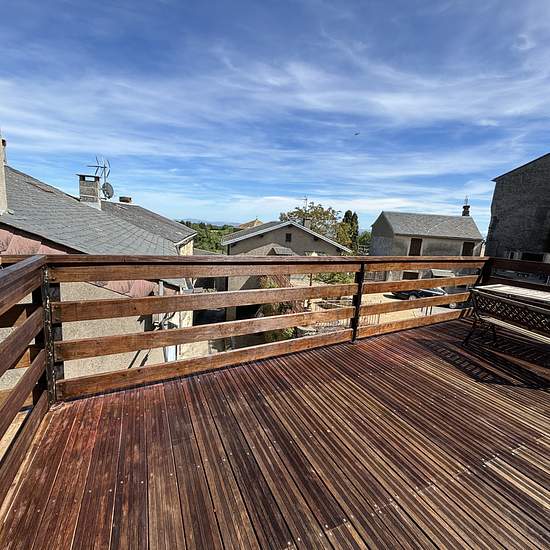 Appartement T3 avec grande terrasse et vue imprenable Rdc ; Séjour, cuisine Etage : 2 chambres, salle d'eau. Climatisation réversible