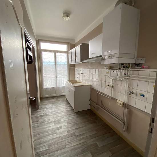 Situé en centre ville de Saint-Eloy-Les-Mines, au deuxième étage d'un petit immeuble, appartement composé d'une entrée desservant une cuisine ouverte sur salle à manger, un séjour, deux chambres, un grand placard et une salle d'eau avec WC. Deux balcons, cave et garage individuel pour un véhicule avec grenier. Double vitrage pvc. Chauffage individuel au gaz de ville (Chaudière de 2015). Faibles charges. Loyer: 485 euros + 20 euros de charges pour la taxe des ordures ménagères et électricité des communs.