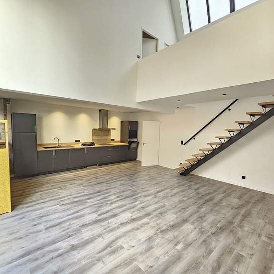 LA6741 SAINT-ETIENNE - Magnifique Loft Type 3 de 84 m² Il est composé d'un hall d'entrée avec un grand salon séjour cuisine US aménagée et équipée. Une terrasse / patio accessible depuis le salon séjour. Une buanderie et divers espace de rangements. Un toilette indépendant A l'étage, deux grandes chambres dont une avec un grand espace dressing. Une salle de douche avec toilette. Système de chauffage individuel par pompe à chaleur AIR/EAU. Menuiseries : Double vitrage Charges: 35 € / mois (relatif à la copro) Honoraires : 612 € Dépôt de garan...