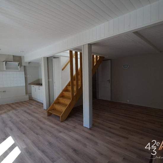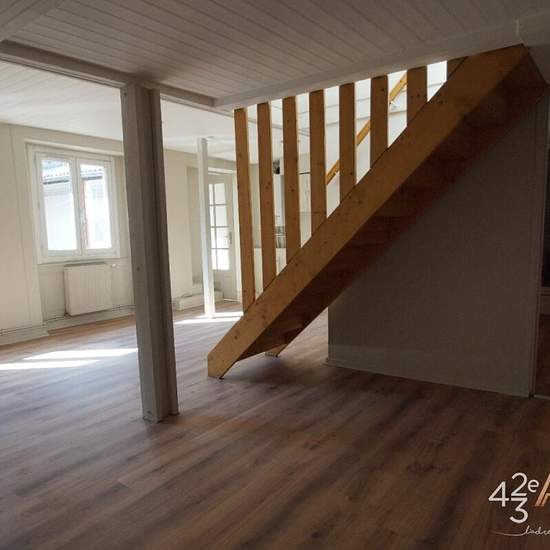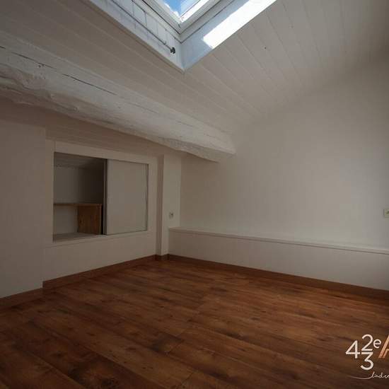 Quartier Jean Jaurès/Hôtel de Ville au 7 rue de Lodi à Saint-Etienne, T3 en duplex situé au 2ème étage et demi en d'environ 50.26m² habitables au sol 60.04m2 environ, avec balcon. Composé d'une cuisine semi équipée ouverte sur séjour, une salle d'eau, un wc indépendant, à l'étage 2 coins nuits sous les toits avec rangements. Chauffage individuel gaz Loyer 457€/mois Provision sur charges 38€/mois Dépôt de garantie 457€ Frais d'agence pour Visite, Constitution du dossier et bail 342.72€ TTC et Frais d'état des lieux 152.28€ TTC. AGENCE 42ème A...