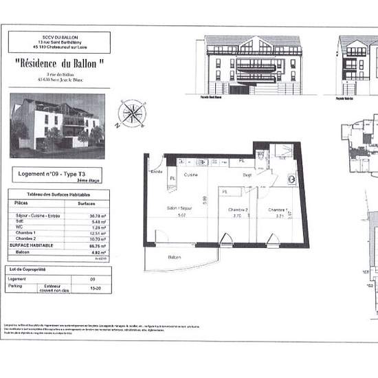 ST JEAN LE BLANC, En plein centre ville, venez profiter du confort de cet appartement dans résidence très récente au 2ème étage avec ascenseur offrant une entrée avec placard, une belle pièce à vivre de 36.78 m2 avec cuisine aménagée et équipée ouverte (plaque de cuisson, four et hotte) sur un balcon exposé nord/ouest, deux chambres dont une avec placard, une salle d'eau et des wc séparés. Vous aurez également de deux places de parking dont une couverte.